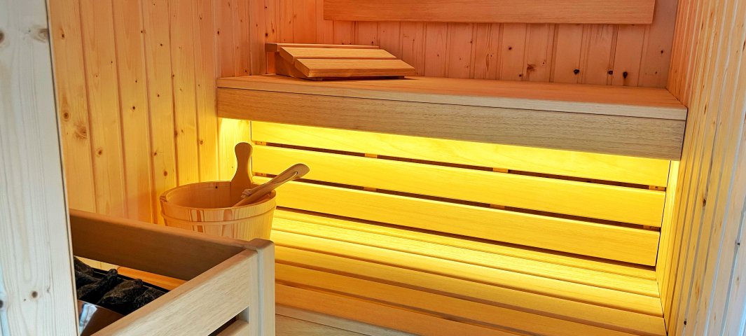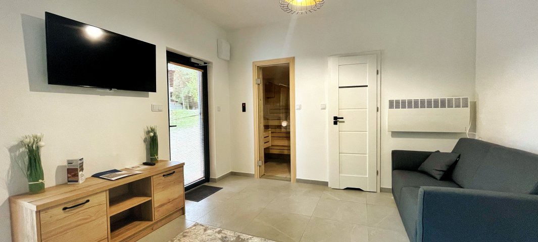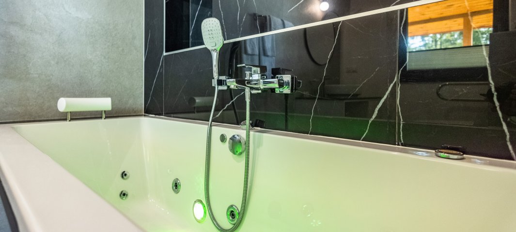 Domek Zdrowie: z prywatną sauną, wanną relaksującą wielofunkcyjnym urządzeniem masującym całe ciało.