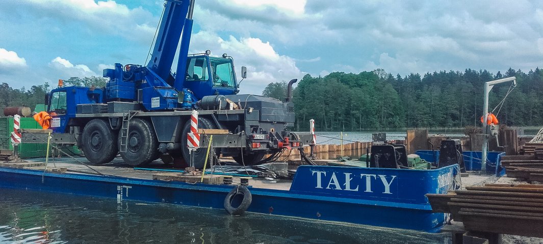 Barka „Tałty” dysponuje pełnym wyposażeniem, które obejmuje dwie kotwice dziobowe i dwie kotwice rufowe. W rejonie rufy i dziobu rozmieszczono pachoły cumownicze. Nie zabrakło także demontowanego relingu pokładowego. Przenośny inklinometr zauważalnie ułatwi pracę z maszynami budowlanymi, ponieważ będzie informował operatora o możliwości przekroczenia dopuszczalnego kąta przechyłu. Na uwagę zasługuje także szereg praktycznych rozwiązań konstrukcyjnych. Wzmocnione pasy jezdne sprawiają, że na barkę może wjechać dźwig, betoniarka, lub koparka. Barkę przystosowano do holowania i pchania, a jej kadłub podzielono na siedem wodoszczelnych zbiorników. Umożliwia to właściwe balastowanie jednostki podczas pracy i nie tylko. Dostęp do zbiorników kadłubowych odbywa się poprzez włazy zlokalizowane na pokładzie. To wszystko sprawia, że statek znakomicie sprawdza się przy realizowaniu takich przedsięwzięć, jak budowa śluz, czy nadbrzeży portowych. Wysoki standard naszej floty sprawia, że każdy rejs po Mazurach staje się niezapomnianym przeżyciem. Nawet wtedy, gdy nie jest to wyprawa rekreacyjna, tylko zawodowa. Dbamy o każdy detal, aby nasi klienci mogli cieszyć się komfortem i bezpieczeństwem.